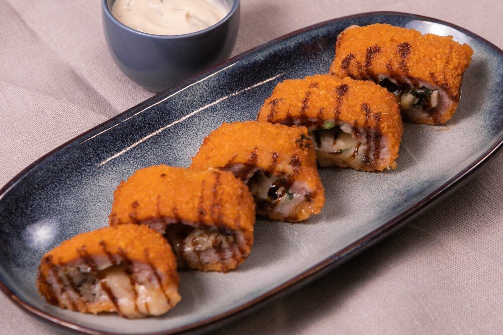 красное мясо цыпленка, с начинкой из шампиньонов, сыра и зелени, обжаренное в панировке