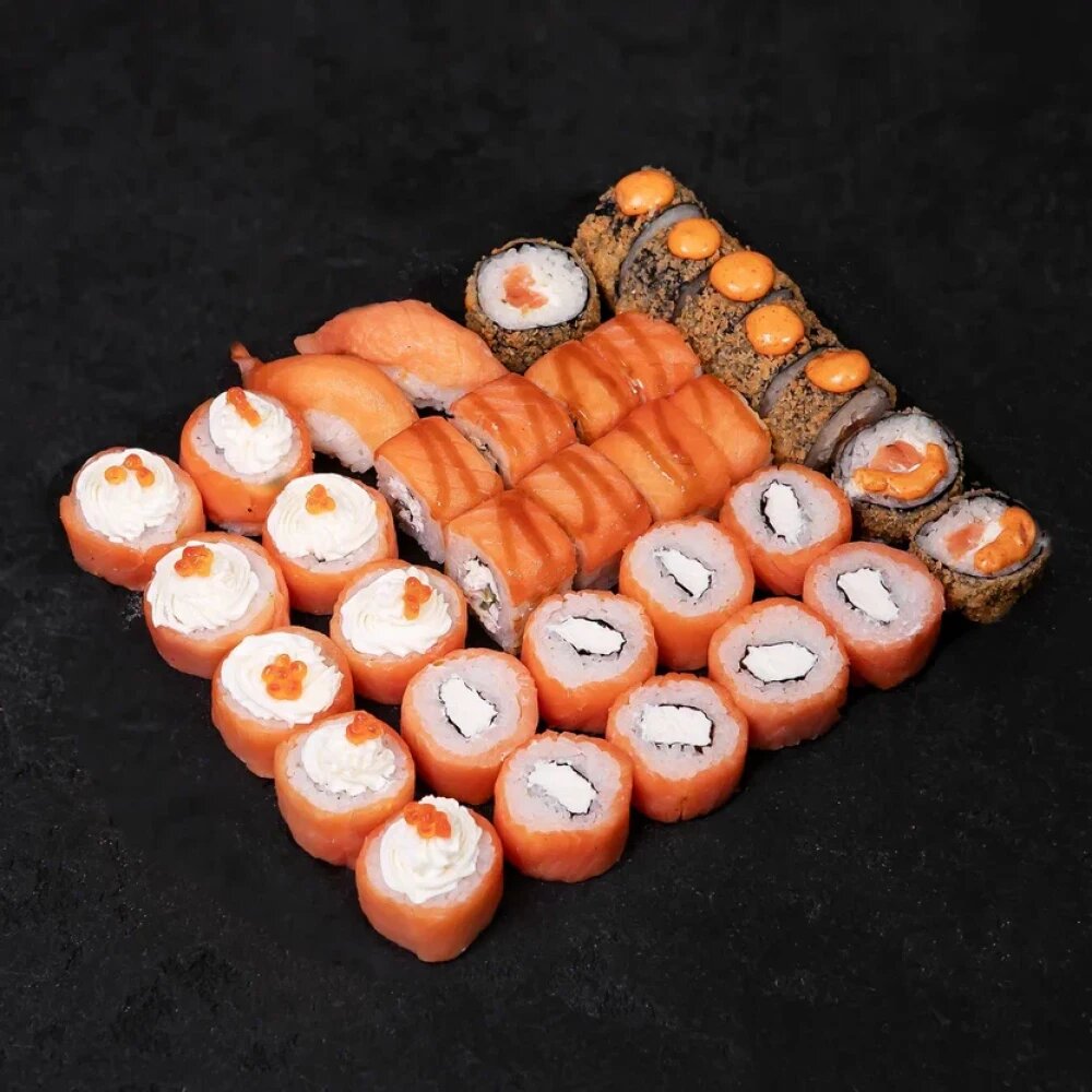 Филадельфия Лайт, Филадельфия, Филадельфия Макси, Филадельфия Спайси, Сяки Суши+соевый соус, васаби, имбирь