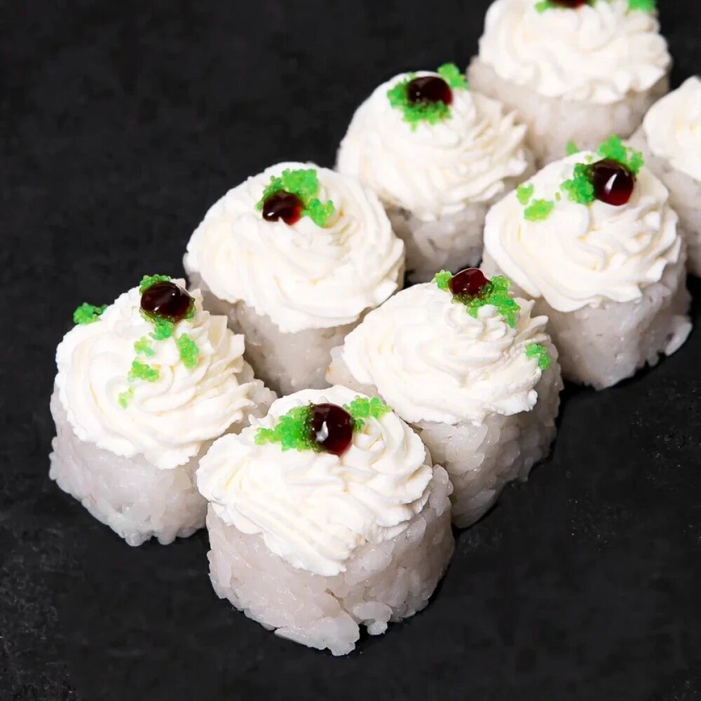 крабовое мясо,соус устричный,сыр творожный,икра масаго,огурец,рис,нори
